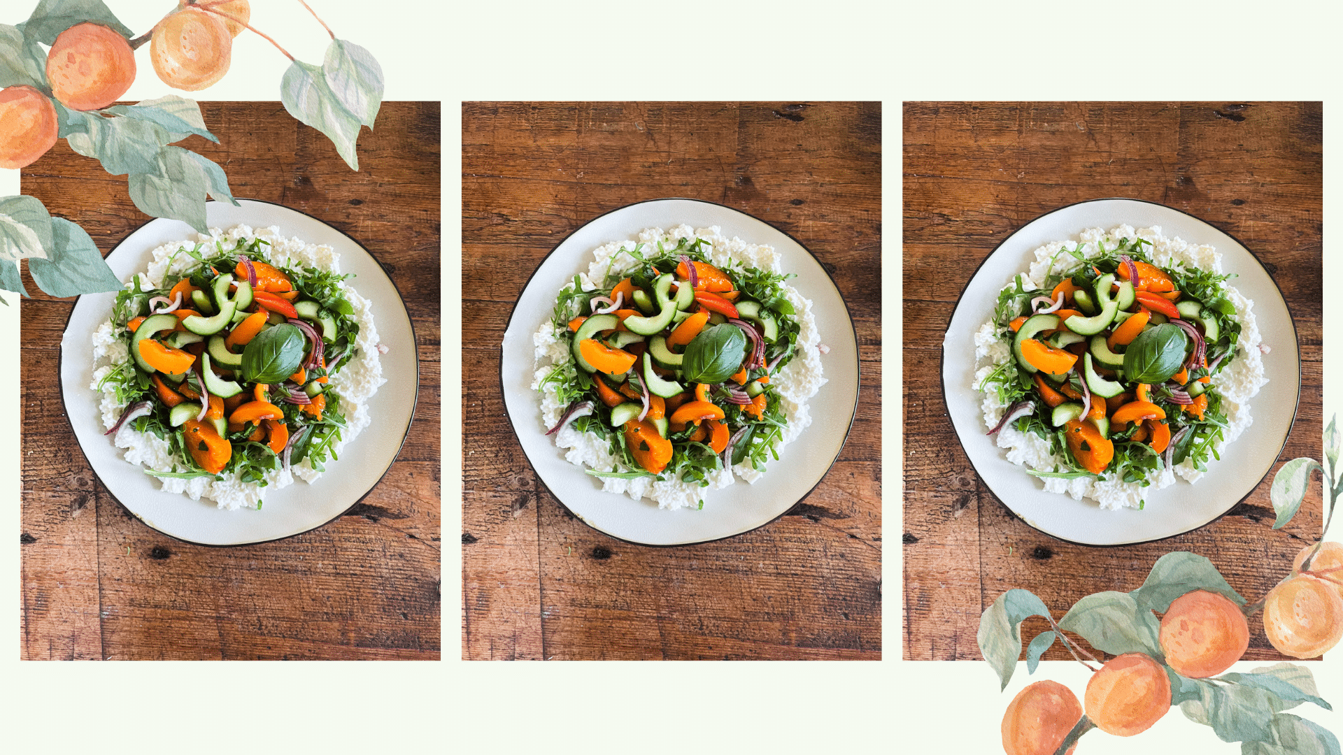 Aprikoosi tuo makeutta tähän salaattiin ja sopii erinomaisesti tämän reseptin hapokkaan fetavaahdon, sekä punasipulin kanssa.