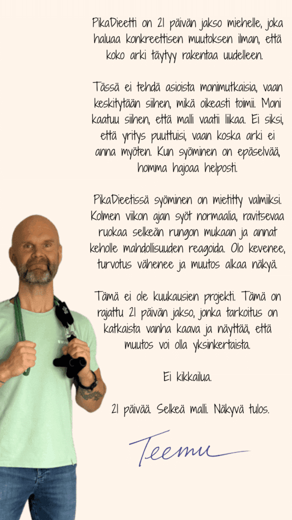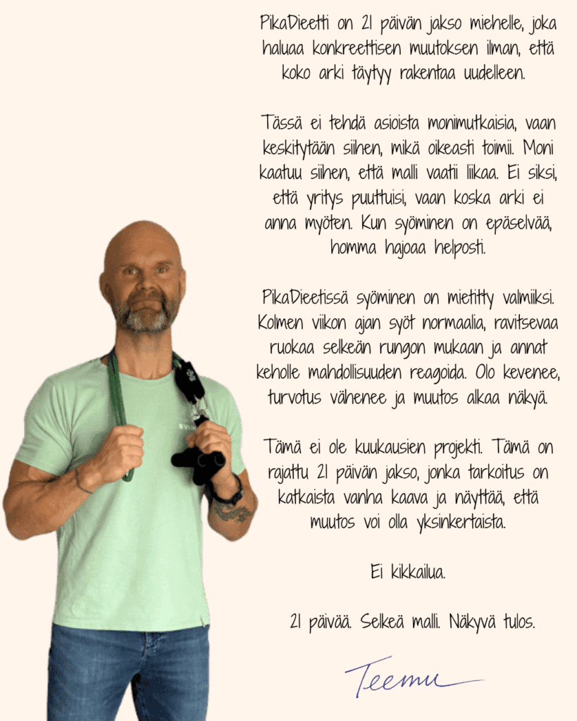 21 päivän PikaDieetti miehille ilman turhaa hifistelyä