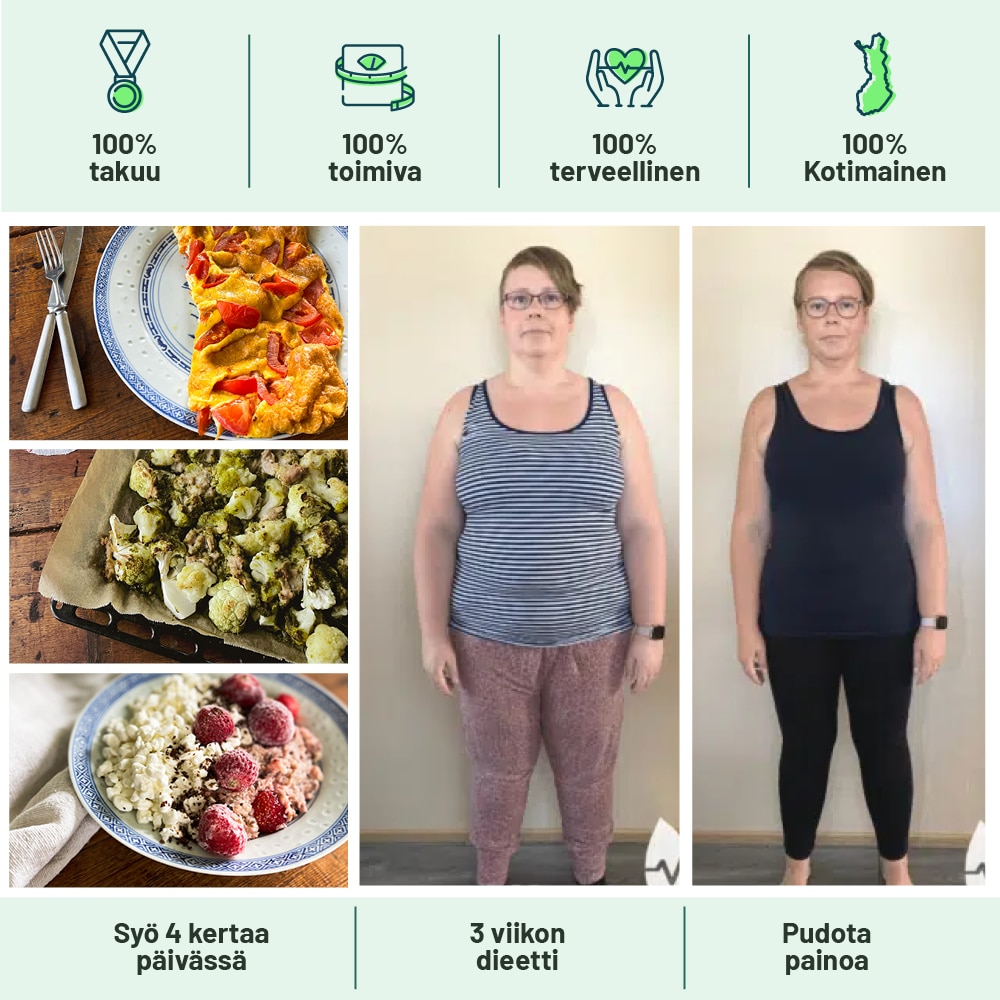 77 483+ suomalaista on onnistunut pudottamaan painoa kanssamme... kuvittele mikä muutos voi tapahtua 3 viikossa