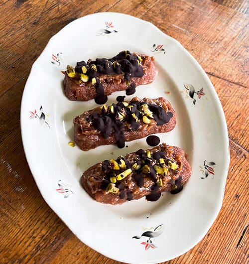 päälle vähän pistaasirouhetta ja 4 palaa tummaa (yli 70%) suklaata sulatettuna