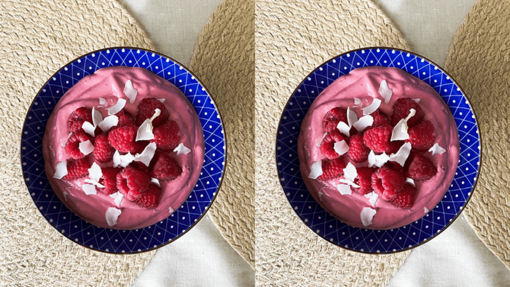 Aloita aamusi raikkaalla vadelman ja mangon makuisella smoothiella.