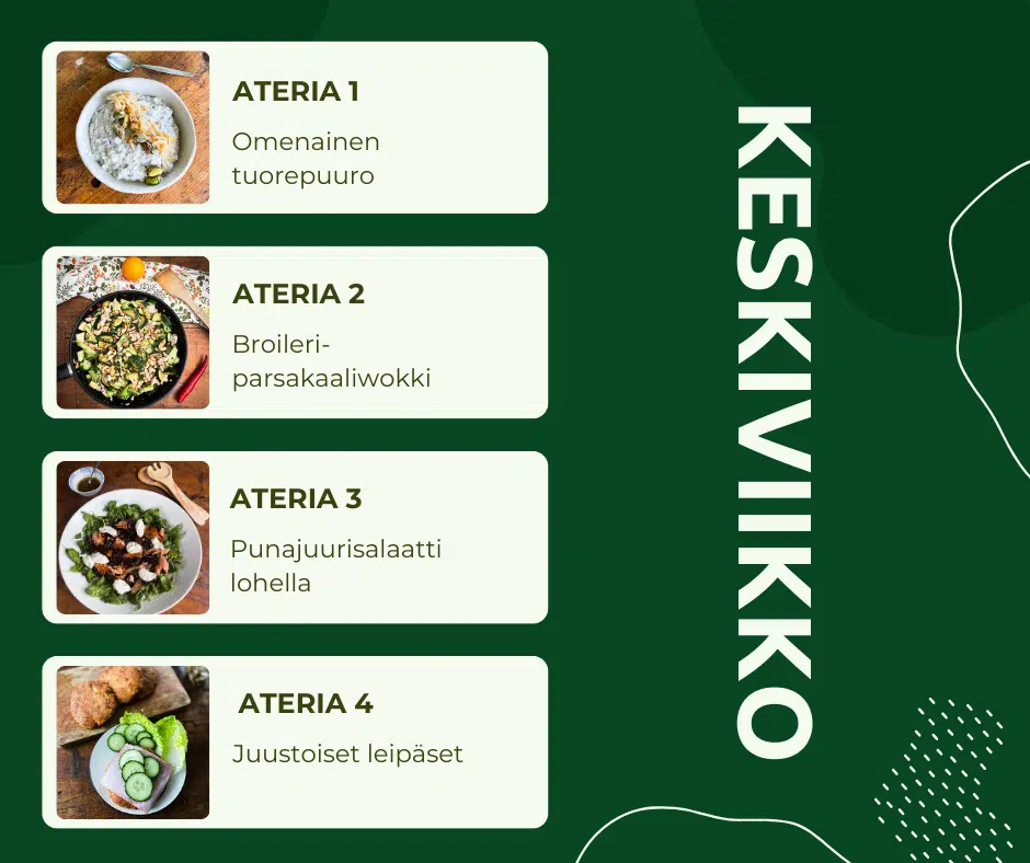 “Noudatan valmista ateriasuunnitelmaa, koska en jaksa miettiä mitä laittaa ja milloin.