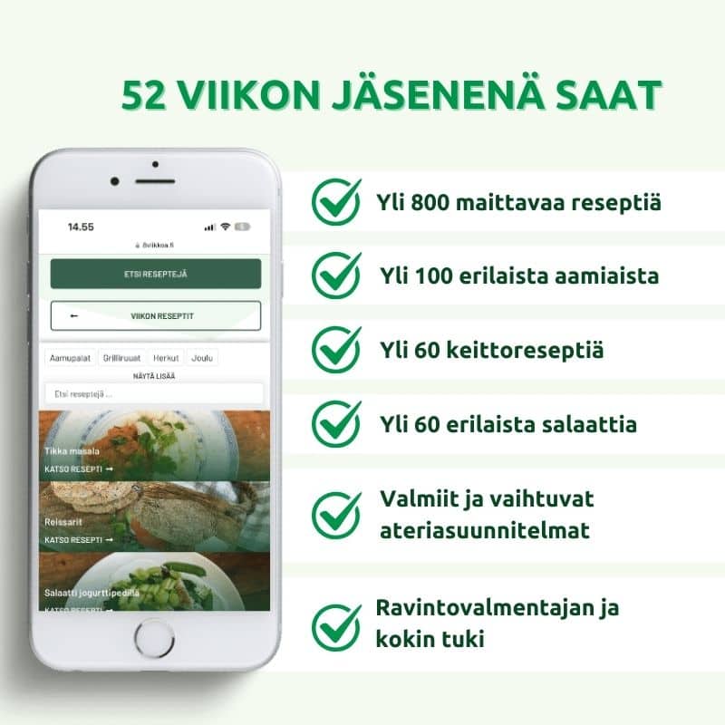 Jos tykkäät kokeilla uutta ja mietit loppuvatko reseptit joskus kesken, niin eivät. Koska päivitämme jatkuvasti lisää reseptejä 52 viikon reseptipankkiin.