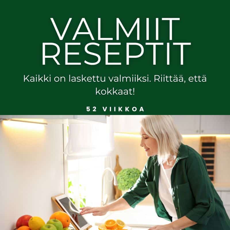 Saat käyttöoikeuden kaikkiin sisältöihin, resepteihin ja ravintovalmentajan tukeen vuodeksi ostohetkestä.