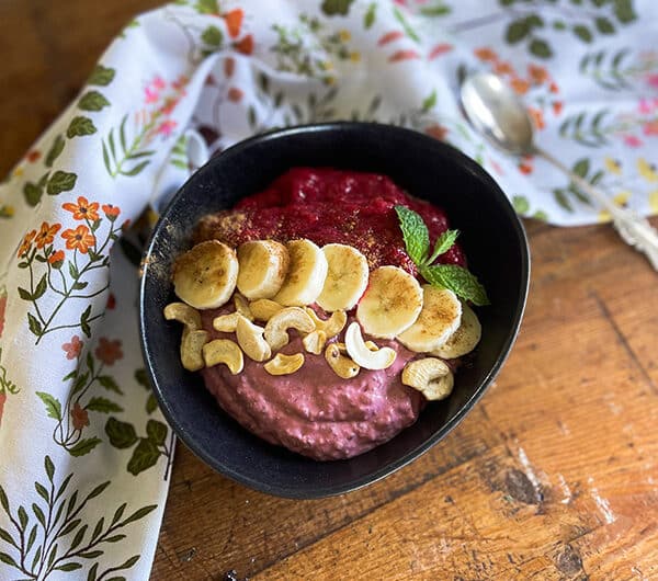 - Syö puuro lopun vadelmahillokkeen, banaanin ja cashewpähkinöiden kanssa. Voit ripotella päälle vielä kanelia.