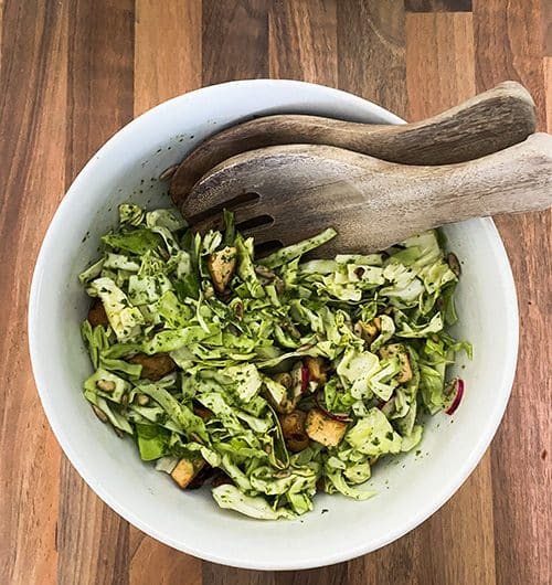 minutesTämän salaatin taika on kastikkeessa. Siinä on riittävästi makua maustamaan miedon tofun ja kaalin.